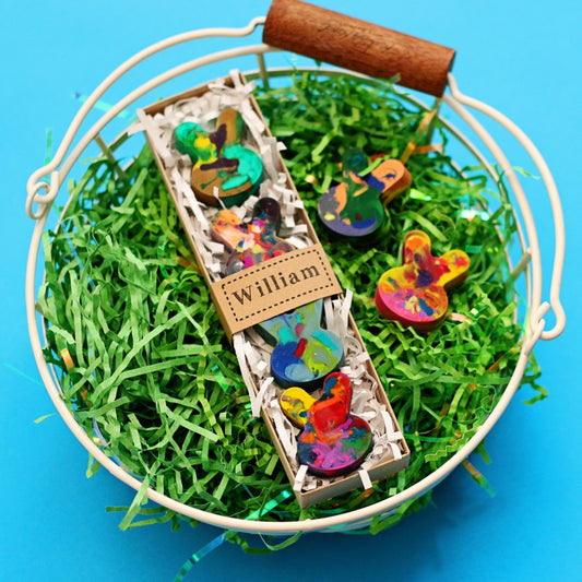 Celebrate Easter with bright, creative crayon gifts designed to be used and enjoyed long after the egg hunt is over. As the original creator of personalized name crayons, our women-owned studio handcrafts high-quality, gift-ready crayon sets made especially for kids. From Easter Crayon Stix® and personalized name crayons to Original Rainbow Crayon® gifts, our Easter collection offers thoughtful Easter basket ideas and unique Easter egg fillers that inspire creativity, imagination, and hands-on play.